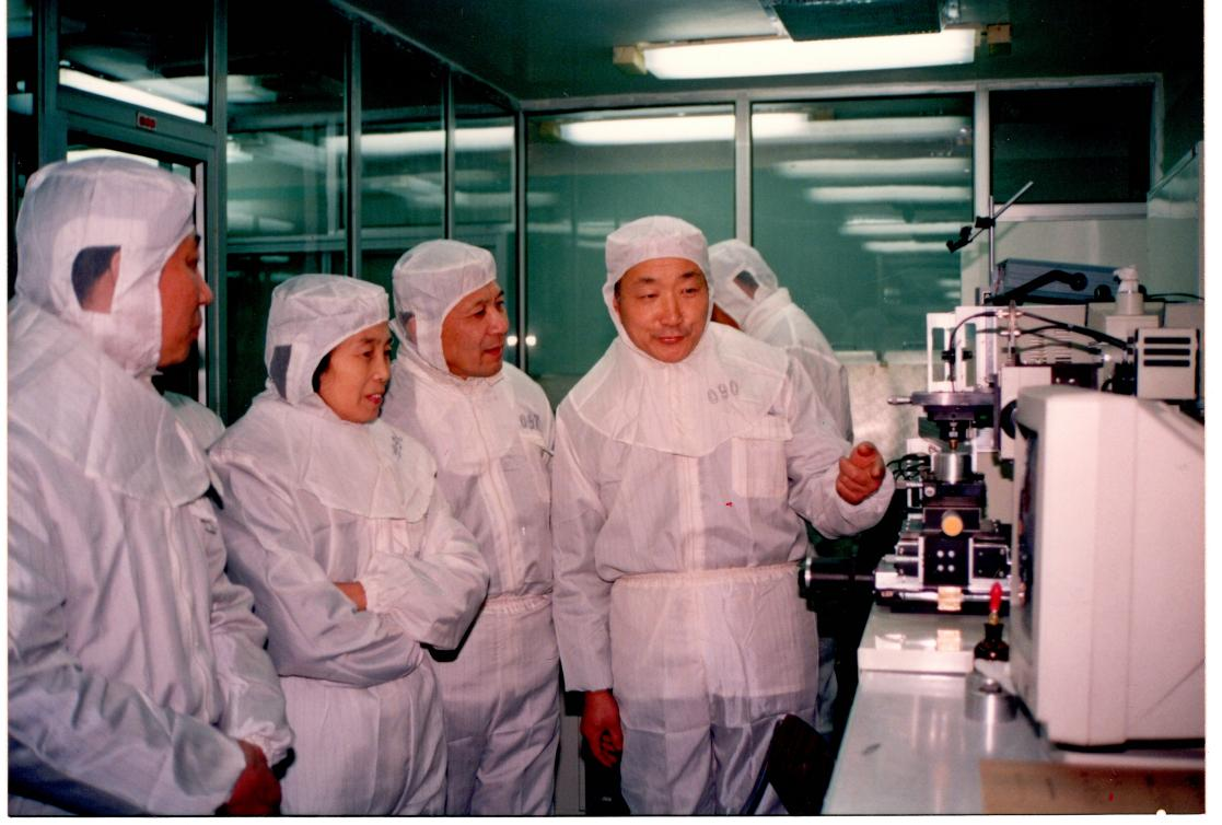 图8 国家光电子工艺中心“七五”建设引进项目同行专家预验收,吴德馨先生(左二)现场考察